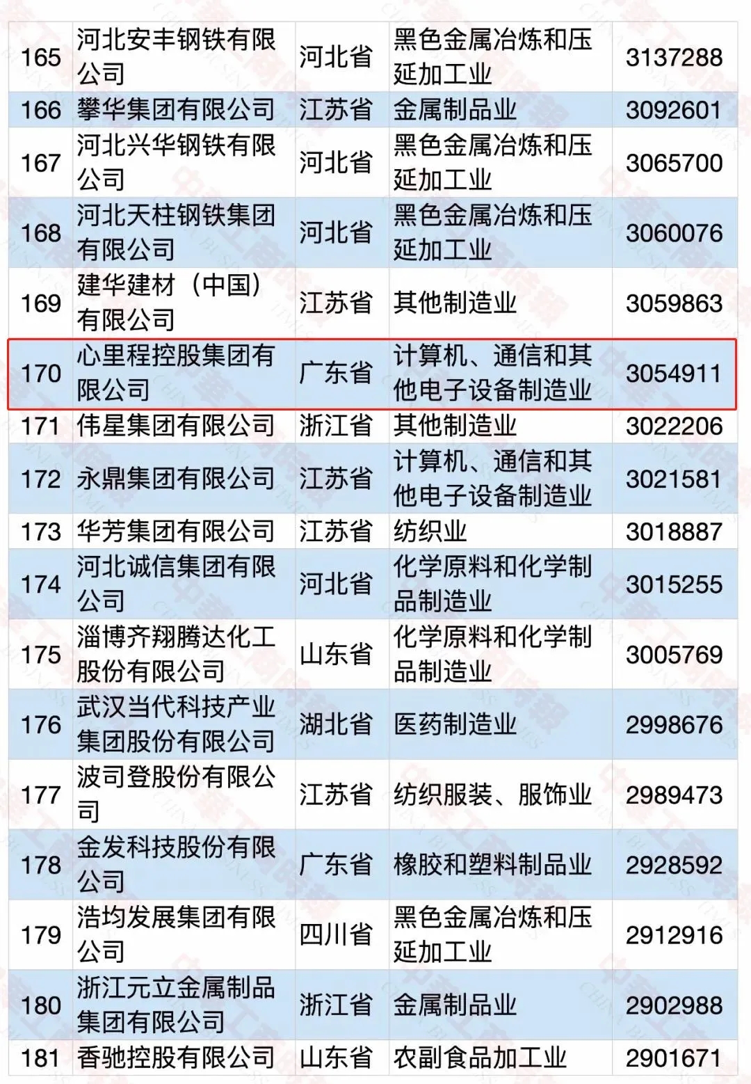 心里程集團(tuán)榮登2020中國(guó)制造業(yè)民營(yíng)企業(yè)500強(qiáng)榜單第170位