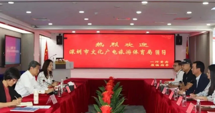 深圳市文化廣電旅游體育局副處長鄒愛華(左一)、二級巡視員韓星元(左二)、處長朱艷(左三)參加座談