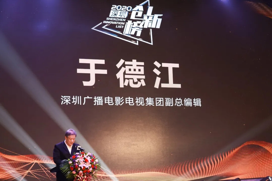 頒獎(jiǎng)盛典上,深圳廣播電影電視集團(tuán)副總編輯于德江對(duì)深圳今年的經(jīng)濟(jì)環(huán)境和科技發(fā)展做了精煉的解讀和分析,賴群陽書記為大家分享了深圳這座經(jīng)濟(jì)發(fā)展奇跡之城背后的創(chuàng)新力量與40年間的不朽成績單,也對(duì)創(chuàng)新榜上榜企業(yè)的逆勢發(fā)展和科技創(chuàng)新表達(dá)肯定與贊可。