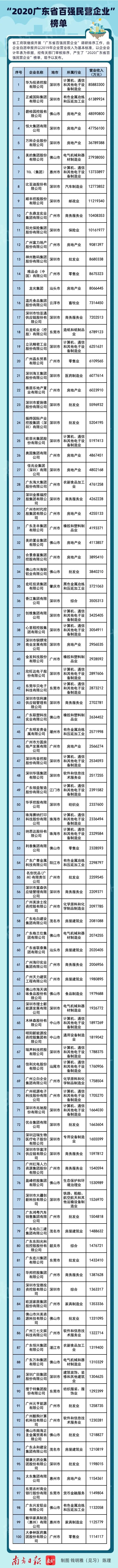 2020廣東省百強民營企業(yè)榜單