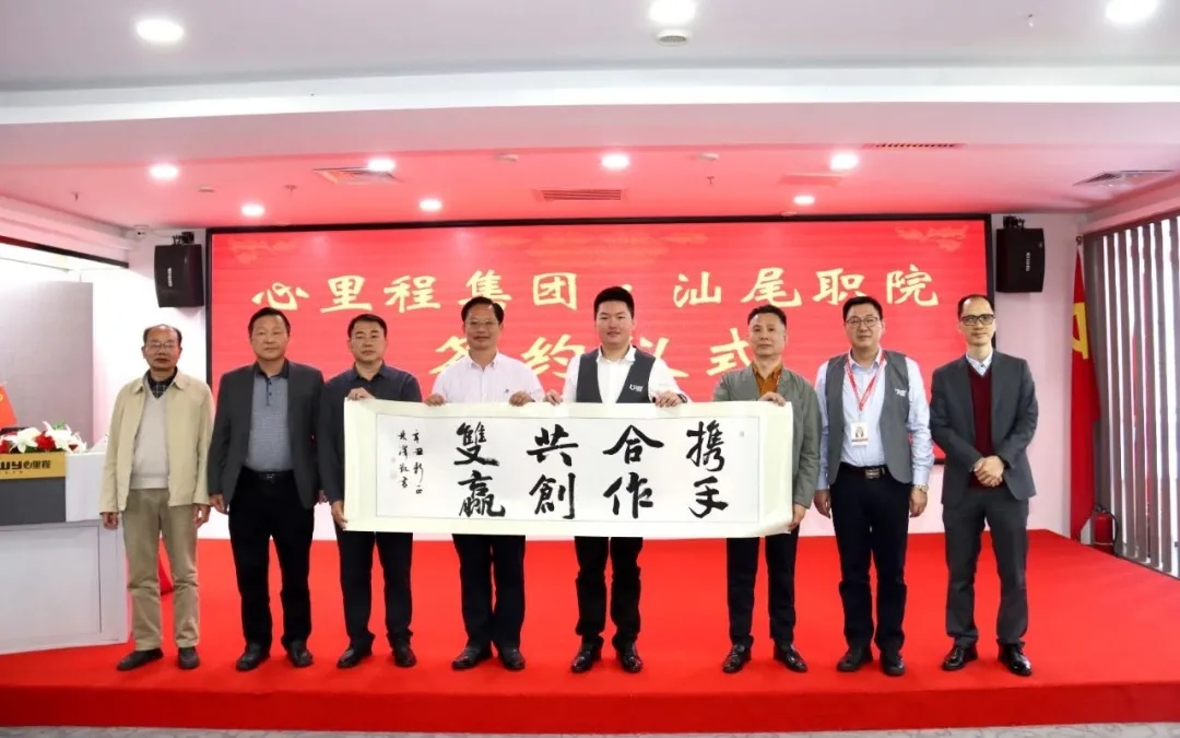 隨后,在雙方領(lǐng)導(dǎo)的見(jiàn)證下,心里程集團(tuán)與汕尾職業(yè)技術(shù)學(xué)院于心里程集團(tuán)總部進(jìn)行教育實(shí)踐基地簽約授牌儀式。