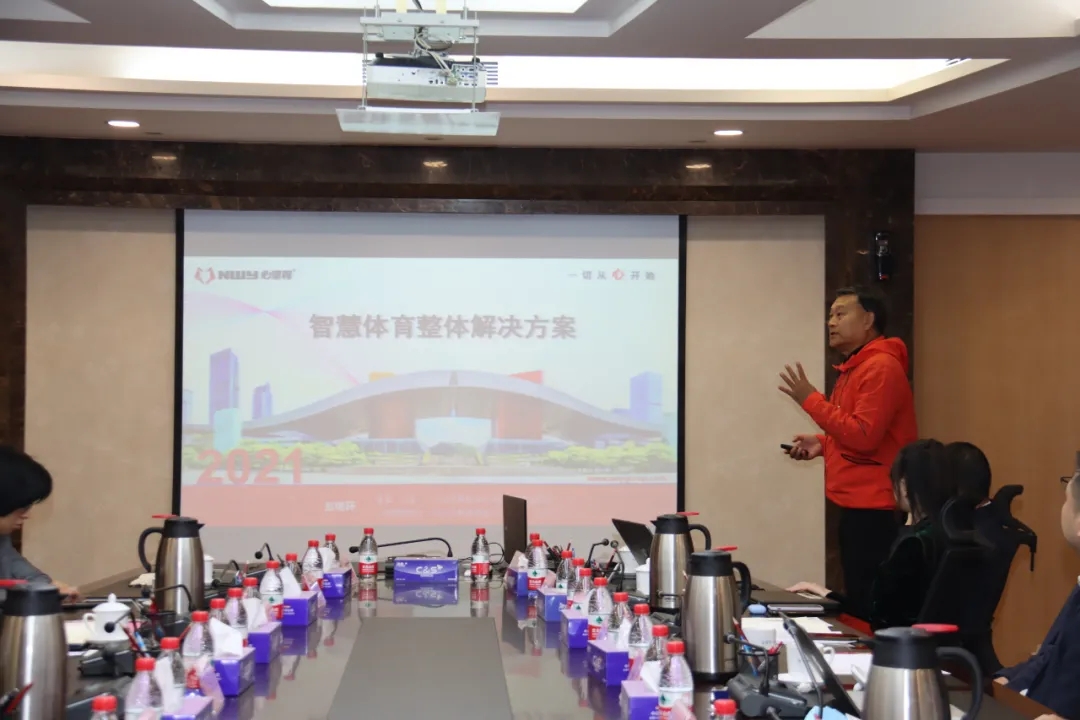 心里程教育集團(tuán)高級(jí)顧問(wèn)、二級(jí)教授、深圳市教育裝備行業(yè)協(xié)會(huì)體育專委會(huì)主任劉晉在會(huì)上講解智慧體育整體解決方案