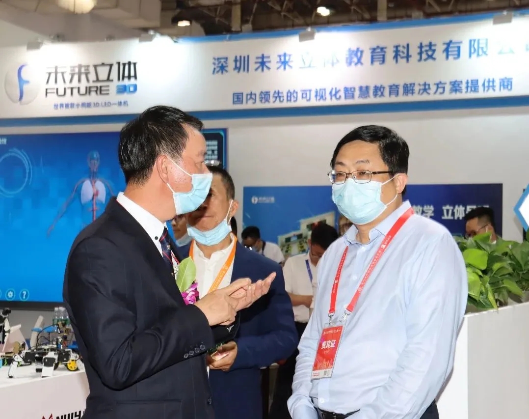 深圳市教育局副局長趙立、巡視員張淶臨、教育信息技術(shù)中心主任張惠敏等領(lǐng)導(dǎo)蒞臨心里程展位參觀指導(dǎo)