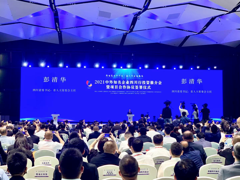 其中,2021中外知名企業(yè)四川行投資推介會(huì)暨項(xiàng)目合作協(xié)議簽署儀式中,來自16個(gè)國家和地區(qū)的近千名工商界翹楚齊聚一堂,圍繞“推動(dòng)高水平開放·融入新發(fā)展格局”主題,共商合作大計(jì)、共繪發(fā)展藍(lán)圖、共話美好未來。四川省委書記彭清華出席并致辭,省委副書記、省長黃強(qiáng)主持,省政協(xié)主席柯尊平、省委副書記鄧小剛出席。省委常委、成都市委書記范銳平,省委常委、常務(wù)副省長羅文,省委常委、秘書長王一宏,省委常委、副省長李云澤,省人大常委會(huì)黨組書記、副主任王寧,省人大常委會(huì)副主任、南充市委書記宋朝華,省政府副省長李剛,省政協(xié)副主席、省工商聯(lián)主席陳放等省領(lǐng)導(dǎo),中外知名企業(yè)及商協(xié)會(huì)負(fù)責(zé)人,省直有關(guān)部門、各市(州)黨委或政府負(fù)責(zé)同志等參加。作為企業(yè)家代表,心里程控股集團(tuán)董事長彭國遠(yuǎn)受邀出席推介會(huì)。