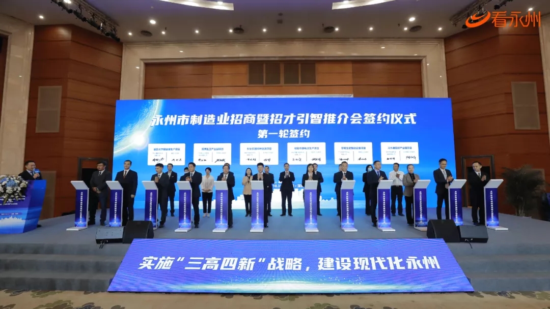 推介會上舉行了項目集中簽約儀式,彭錦環(huán)總裁與永州市相關(guān)領(lǐng)導(dǎo)一同見證簽約。此次推介會共簽約項目48個,其中,制造業(yè)項目36個,招才引智項目12個。總投資315億元,涵蓋電子信息、先進裝備制造、新材料、鋰電池生產(chǎn)和農(nóng)產(chǎn)品精深加工等領(lǐng)域。