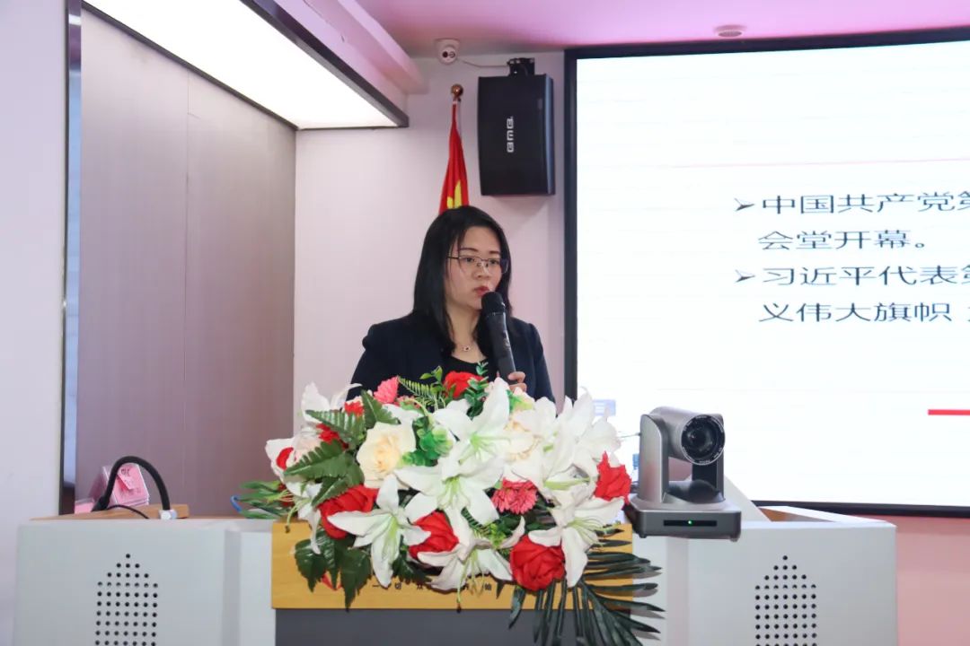 會(huì)上,肖丹副教授生動(dòng)解讀了黨的二十大報(bào)告的主要內(nèi)容及精神要點(diǎn),強(qiáng)調(diào)要深刻認(rèn)識(shí)馬克思主義在意識(shí)形態(tài)領(lǐng)域的指導(dǎo)地位,并從“大會(huì)概況及重要意義”“如何學(xué)習(xí)領(lǐng)悟二十大精神”“貫徹落實(shí)二十大精神”等3個(gè)方面談起,號(hào)召?gòu)V大黨員要深入學(xué)習(xí)全會(huì)精神,緊密團(tuán)結(jié)在以習(xí)近平同志為核心的黨中央周?chē)?,維護(hù)黨的集中和統(tǒng)一領(lǐng)導(dǎo),建設(shè)具有強(qiáng)大凝聚力和引領(lǐng)力的社會(huì)主義意識(shí)形態(tài)。她指出,要充分認(rèn)識(shí)黨的二十大精神的重大意義,堅(jiān)持全面系統(tǒng)學(xué)、深入思考學(xué)、聯(lián)系實(shí)際學(xué),深刻理解領(lǐng)會(huì)報(bào)告的精神實(shí)質(zhì)和豐富內(nèi)涵,以實(shí)際行動(dòng)忠誠(chéng)擁護(hù)“兩個(gè)確立”,增強(qiáng)“四個(gè)意識(shí)”,堅(jiān)定“四個(gè)自信”,做到“兩個(gè)維護(hù)”,切實(shí)把思想和行動(dòng)統(tǒng)一到黨的二十大精神上來(lái)。