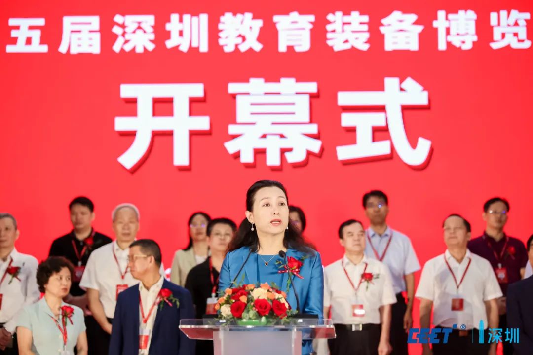中國教育裝備行業(yè)協(xié)會(huì)秘書長李瀛,深圳市福田區(qū)委常委、統(tǒng)戰(zhàn)部部長吳歡,深圳市教育局原二級(jí)巡視員張淶臨,教育部關(guān)心下一代工作委員會(huì)常務(wù)副主任、中國教育裝備行業(yè)協(xié)會(huì)專家委員會(huì)主任王富,深圳市教育學(xué)會(huì)會(huì)長金依俚,教育部教育技術(shù)與資源發(fā)展中心標(biāo)準(zhǔn)處處長劉強(qiáng),深圳市教育裝備中心主任張惠敏,深圳市教育科學(xué)研究院院長李桂娟等領(lǐng)導(dǎo)和嘉賓出席開幕式。心里程控股集團(tuán)董事·總裁、深圳市教育裝備行業(yè)協(xié)會(huì)會(huì)長彭錦環(huán)出席并代表主辦方致歡迎詞。
