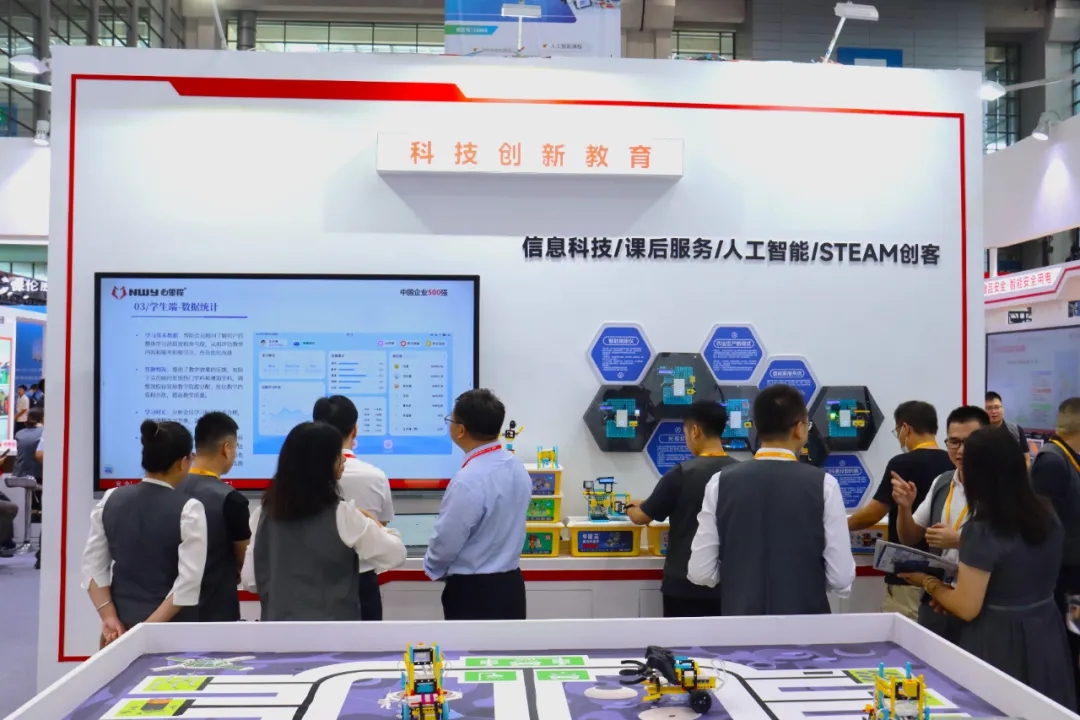 心里程現(xiàn)場展出的主要有數(shù)字化智慧校園管理平臺、中小學(xué)整體解決方案、職教&高校解決方案、信創(chuàng)整體解決方案、校園食品安全第三方監(jiān)管服務(wù)方案、數(shù)字化實驗室教學(xué)平臺、智能安全用電、課后服務(wù)、人工智能、Steam創(chuàng)客教育、可視電話、午休課桌椅、午休床等前沿信息化教育裝備、方案。