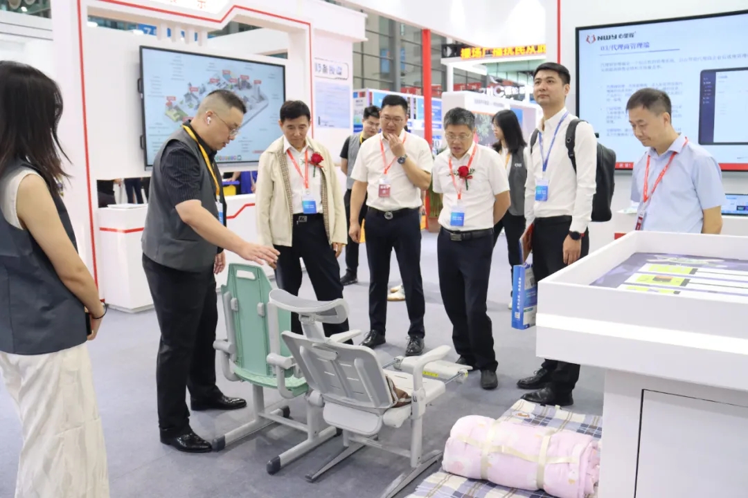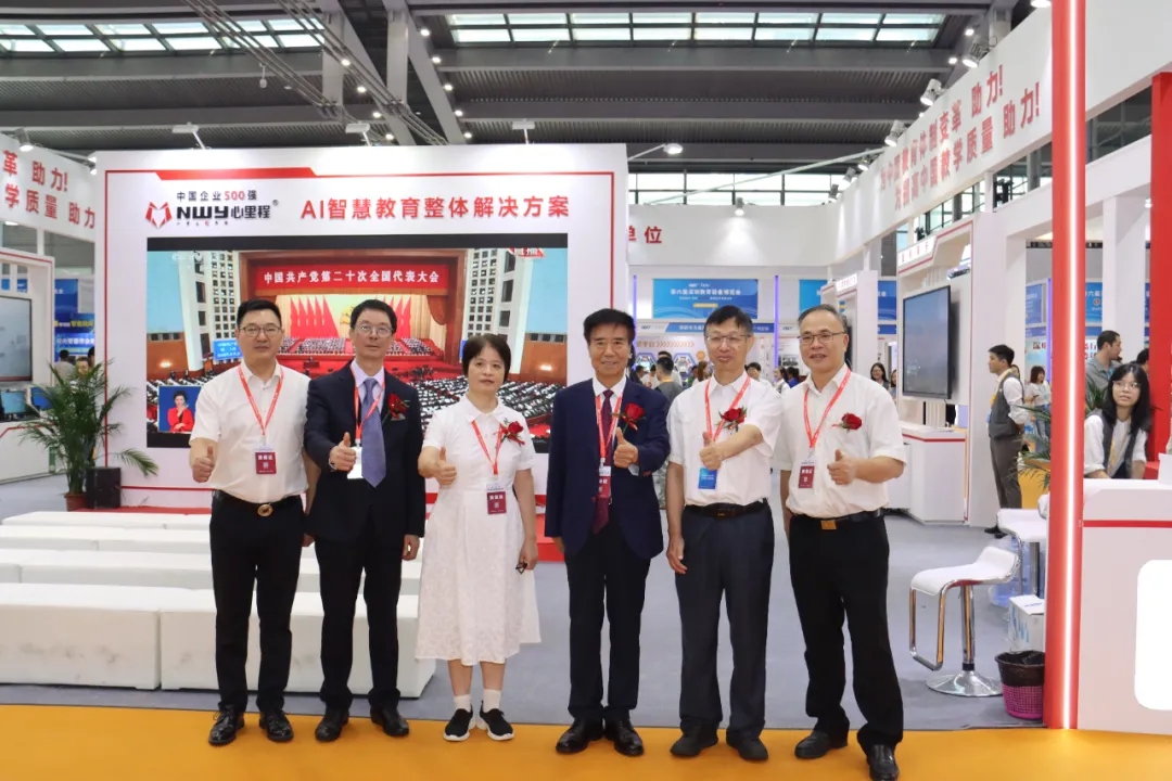 四川省教育裝備行業(yè)協(xié)會會長張林祥(左三)蒞臨心里程展位參觀指導(dǎo)