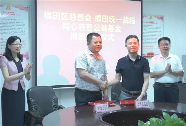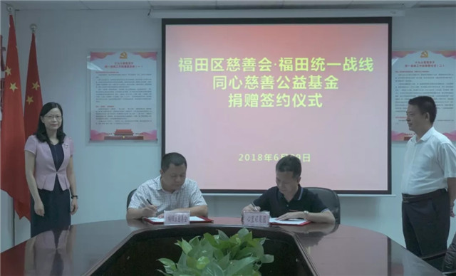 啟動儀式開始前,在福田區(qū)委常委、統(tǒng)戰(zhàn)部長劉俊琳,福田區(qū)委統(tǒng)戰(zhàn)部常務副部長朱亞銘,福田區(qū)民政局副局長呂凡,福田區(qū)慈善會秘書長楚天等領導的見證下,彭俏奇董事長與福田區(qū)慈善會會長莊儒平正式簽署捐贈協(xié)議。
