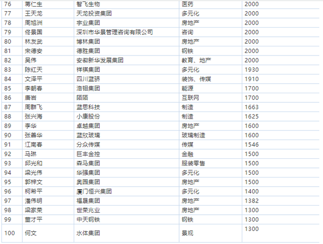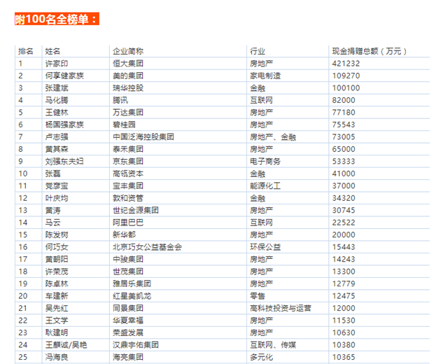 ▲“2016胡潤(rùn)中國(guó)慈善富豪排行榜”前20名