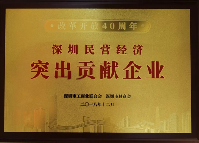 “改革開放40周年深圳民營經(jīng)濟突出貢獻企業(yè)”授牌