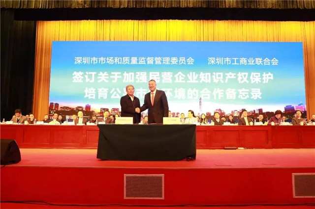 市市場監(jiān)管委黨組成員、市場監(jiān)管局副局長夏昆山與市工商聯(lián)主席、市總商會會長陳志列分別代表兩家單位簽署《市市場監(jiān)管委、市工商聯(lián)關于加強民營企業(yè)知識產(chǎn)權(quán)保護培育公平市場環(huán)境的合作備忘錄》,雙方將在知識產(chǎn)權(quán)培訓、業(yè)務指導、加大知識產(chǎn)權(quán)維權(quán)力度、促進知識產(chǎn)權(quán)運營孵化等四大方面進行深度合作。