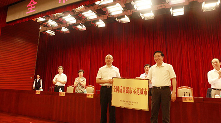 會(huì)議宣讀了國(guó)家質(zhì)檢總局關(guān)于命名深圳市為全國(guó)質(zhì)量強(qiáng)市示范城市的公告,。深圳市市長(zhǎng)許勤從國(guó)家質(zhì)檢總局副局長(zhǎng)陳鋼手中接過“全國(guó)質(zhì)量強(qiáng)市示范市”牌匾。深圳也成為全國(guó)首個(gè)獲此殊榮的城市。至此,“深圳質(zhì)量”成為深圳經(jīng)濟(jì)發(fā)展示范全國(guó)的又一個(gè)新的標(biāo)桿。市長(zhǎng)許勤表示,未來,深圳將以更大的決心和力度來推進(jìn)質(zhì)量強(qiáng)市工作,打造“深圳質(zhì)量”,奮力爭(zhēng)當(dāng)質(zhì)量效益型排頭兵,率先打造特區(qū)經(jīng)濟(jì)升級(jí)版。