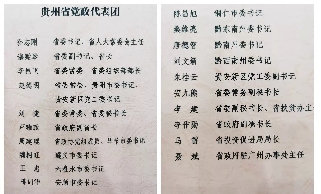 貴州省黨政代表團出席活動名單