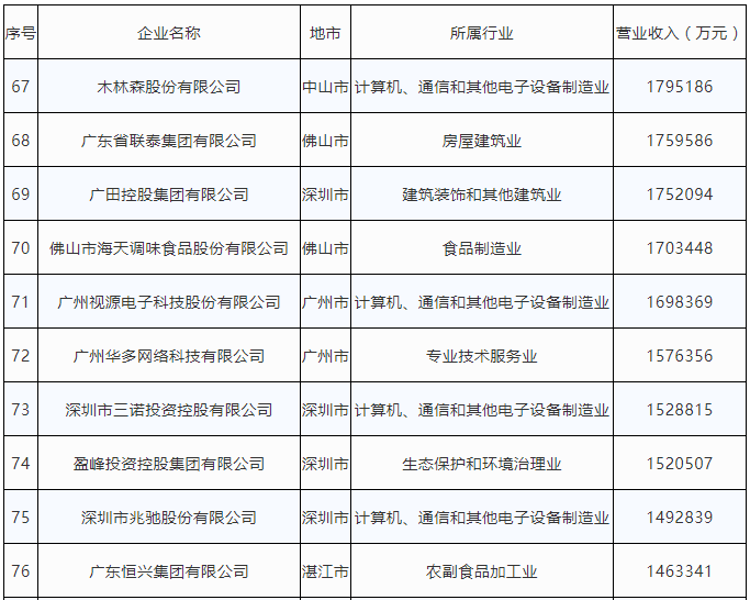 | 序號(hào) | 企業(yè)名稱 | 地市 | 所屬行業(yè) | 營業(yè)收入(萬元) |