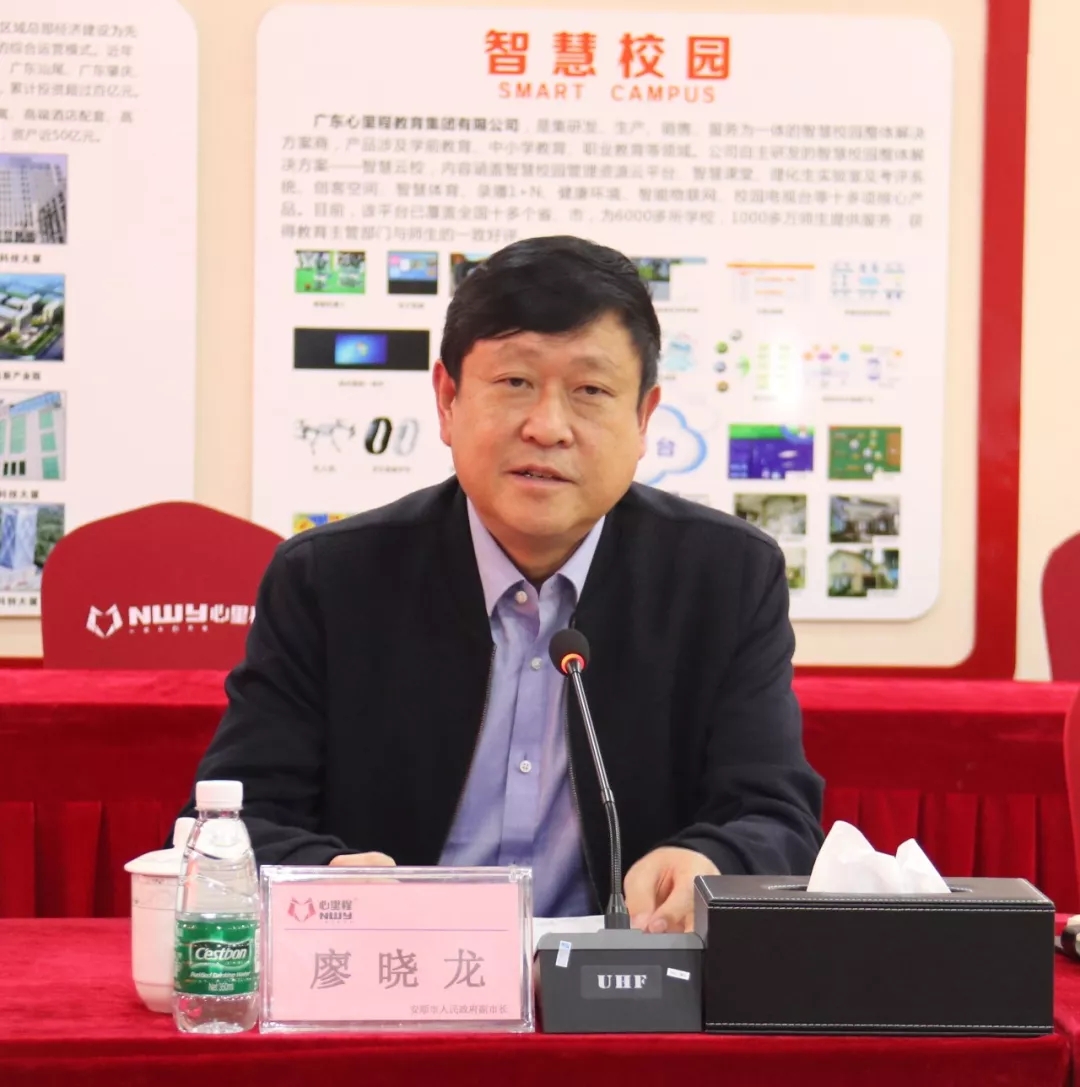 廖曉龍副市長由衷地說:“教育事業(yè)是造福子孫后代的偉大事業(yè),對心里程集團由衷的敬佩”。他詳細推介了安順市的投資環(huán)境:安順位于貴州省中西部,是黃果樹大瀑布的故鄉(xiāng),素有“中國瀑鄉(xiāng)”“西部之秀”美譽。“十三五”以來,安順市搶抓“一帶一路”建設(shè)、軍民融合發(fā)展戰(zhàn)略等新機遇,立足自身優(yōu)勢,著力構(gòu)建以軍民融合、現(xiàn)代裝備制造為核心的產(chǎn)業(yè)架構(gòu),工業(yè)發(fā)展質(zhì)量持續(xù)提高,已成為全省推進軍民融合戰(zhàn)略和發(fā)展現(xiàn)代裝備制造產(chǎn)業(yè)的新高地。教育方面,近年來,安順市各級各部門持續(xù)發(fā)力,全面推進義務(wù)教育基本均衡向優(yōu)質(zhì)均衡邁進。