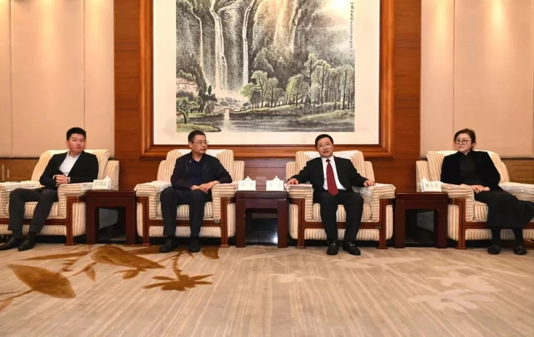 會前,彭國遠董事長(左一)受到黃偉副書記等領導親切接見并進行了座談交流