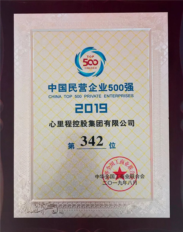 ●8月22日,2019中國民營企業(yè)500強(qiáng)峰會在青海西寧隆重舉行,2019中國民營企業(yè)500強(qiáng)系列榜單和《中國民營企業(yè)500強(qiáng)調(diào)研分析報告》同期發(fā)布。心里程控股集團(tuán)以2513917萬元榮登榜單第342位。