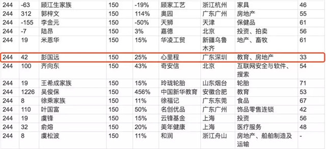 ●10月10日,胡潤研究院今日攜手LEXUS雷克薩斯,聯(lián)合發(fā)布《2019 LEXUS雷克薩斯 · 胡潤百富榜》(2019 LEXUS · Hurun China Rich List)。今年是胡潤研究院自1999年以來連續(xù)第21次發(fā)布“胡潤百富榜”,上榜門檻連續(xù)第七年保持20億元。上榜企業(yè)家財富計算的截止日期為今年8月15日。今年共有1819位企業(yè)家財富超過20億,心里程控股集團(tuán)董事長彭國遠(yuǎn)以150億元財富榮登百富榜第244位,較2018年上升42位。