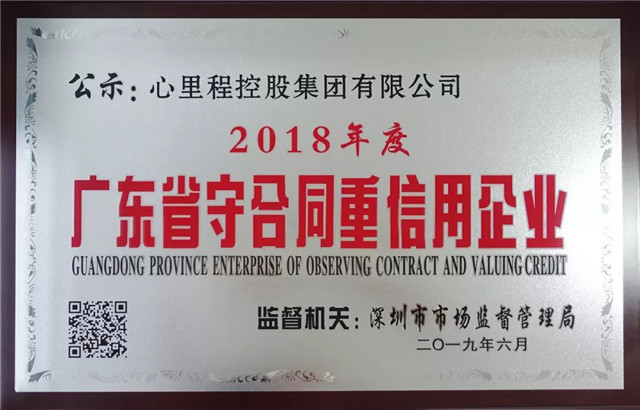 ●6月1日,廣東省市場監(jiān)督管理局對“2018年度守合同重信用企業(yè)”進(jìn)行了公示,心里程控股集團(tuán)以自身良好的信用體系及誠實守信的企業(yè)形象,榮獲“2018年度廣東省守合同重信用企業(yè)”稱號。