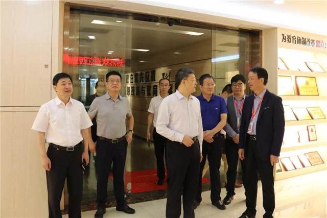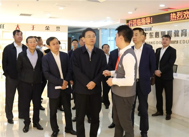 ●9月20日,2019深圳市教育裝備博覽會期間,肇慶市端州區(qū)委書記劉慶良率隊蒞臨心里程集團(tuán)展位參觀指導(dǎo),并深入心里程集團(tuán)總部考察座談。