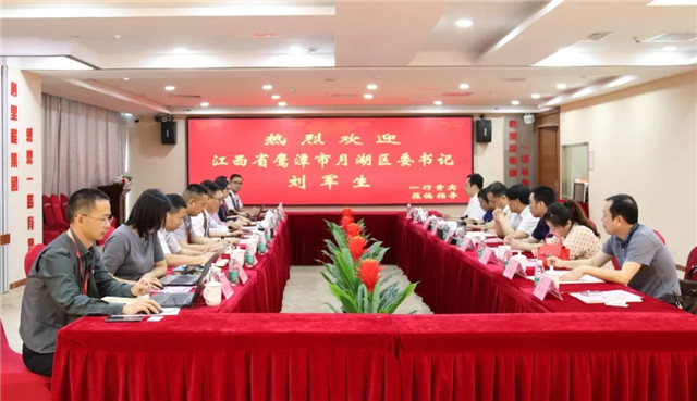 ●5月20日,江西省鷹潭市月湖區(qū)委書記劉軍生率隊蒞臨心里程集團(tuán)總部考察交流。