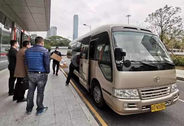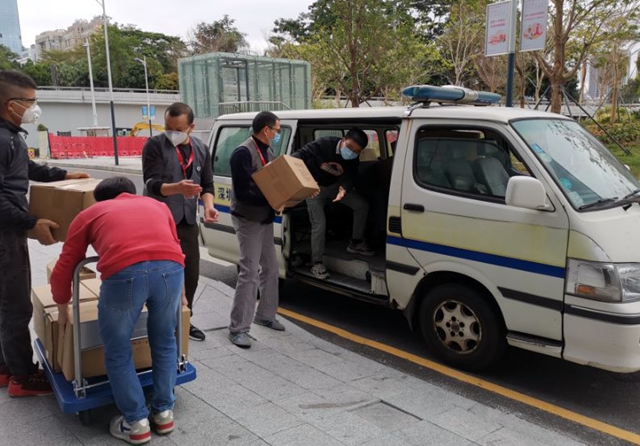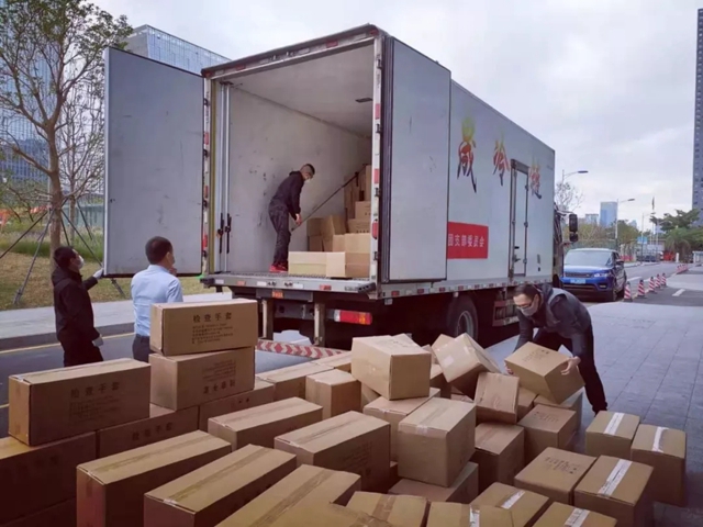 深圳市婦幼保健醫(yī)院派車于心里程控股集團總部接收3萬余件捐贈物資
