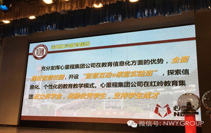 管辦評(píng)分高,新體制繪新愿景;政校企聯(lián)合,大智慧創(chuàng)大教育。2015年4月16日,廣東心里程電子集團(tuán)有限公司捐資一億元與深圳福田區(qū)人民政府合作成立紅嶺教育集團(tuán)簽約儀式暨深圳紅嶺教育集團(tuán)和中國(guó)智慧教育研究院成立典禮在紅嶺中學(xué)隆重舉行。心里程電子集團(tuán)與紅嶺中學(xué)的合作使心里程電子集團(tuán)這個(gè)國(guó)家級(jí)高新技術(shù)企業(yè)、使紅嶺中學(xué)這所與深圳經(jīng)濟(jì)特區(qū)同齡的深圳名校,在這個(gè)具有里程碑意義的日子里,轉(zhuǎn)入全新發(fā)展的時(shí)期。