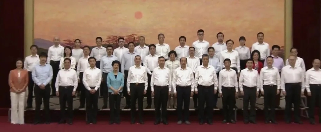 省委書記李希(前排左七)、省長馬興瑞(前排左九)、省人大常委會主任李玉妹(前排左五)、